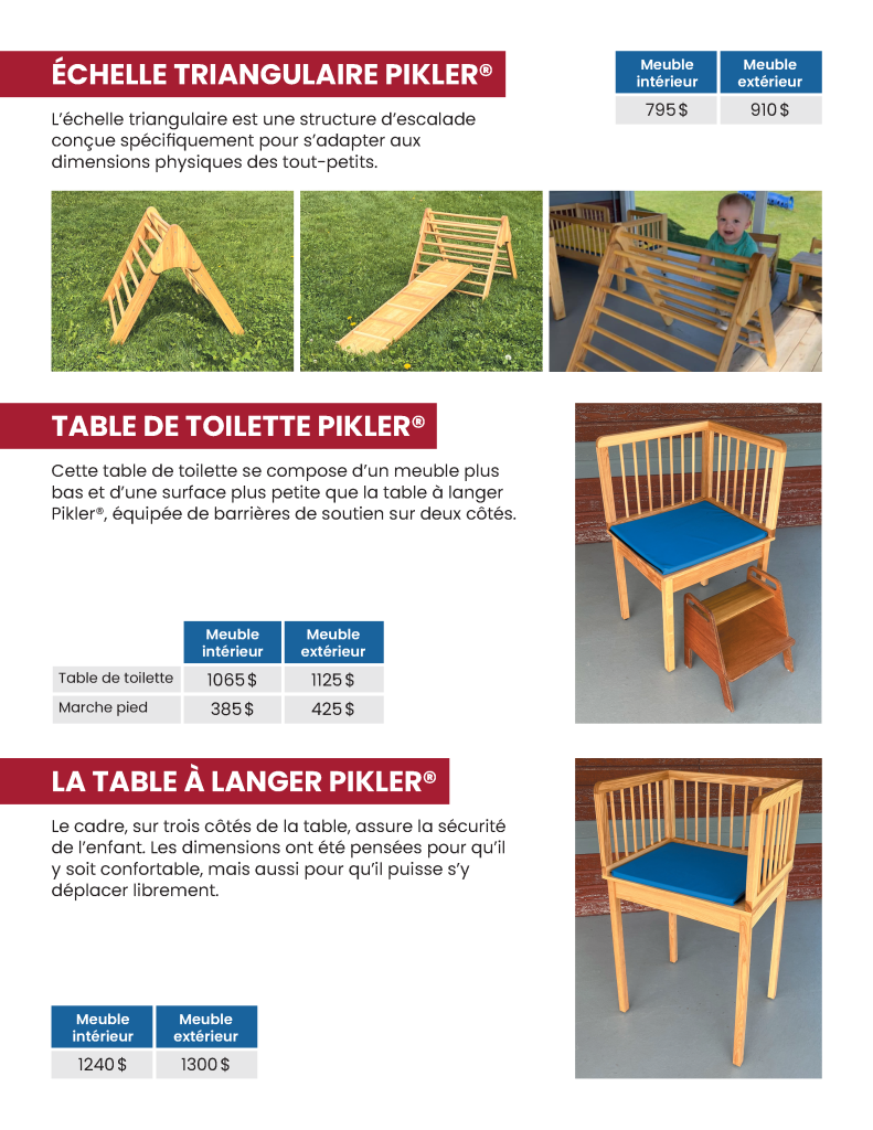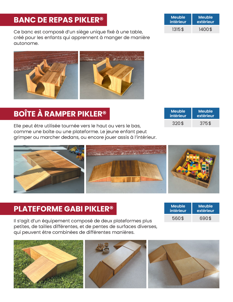 Le matériel inspiré de la pédagogie Pikler encourage la motricité libre et l’autonomie du jeune enfant, tant dans ses moments de jeu que pendant les soins, tout en apportant un précieux soutien au travail des professionnels.